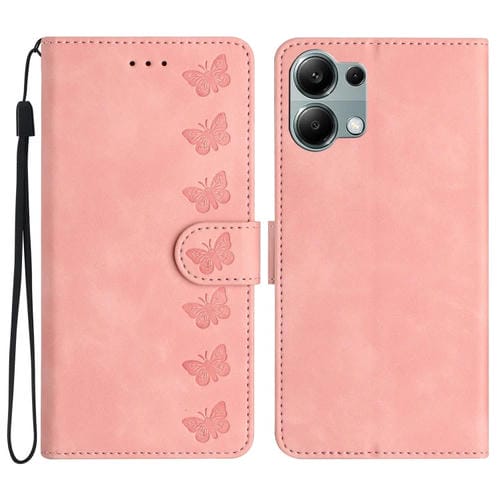 Funda de Cuero con Relieve de Siete Mariposas para Redmi Note 13 Pro 4G (Rosa)
