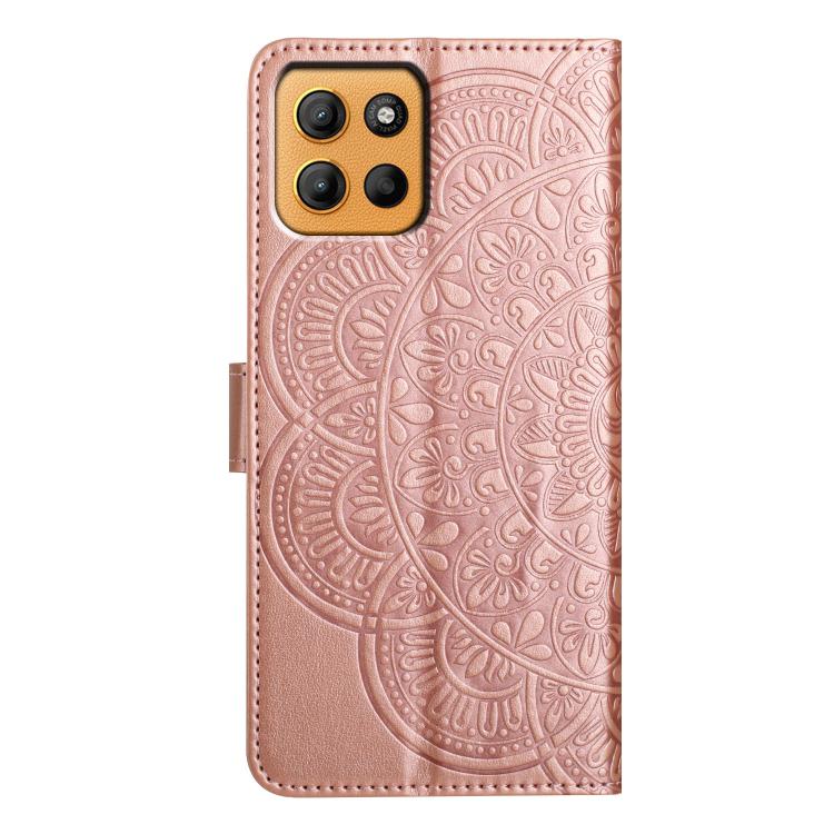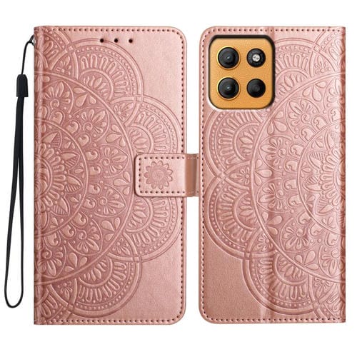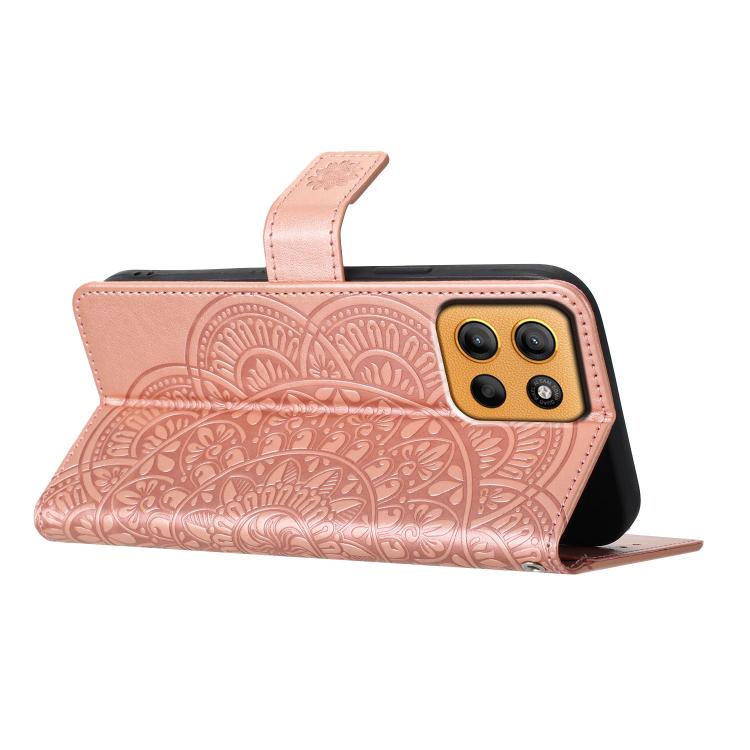 Funda de Cuero con Relieve Floral para Motorola Moto G15 (Oro Rosa)