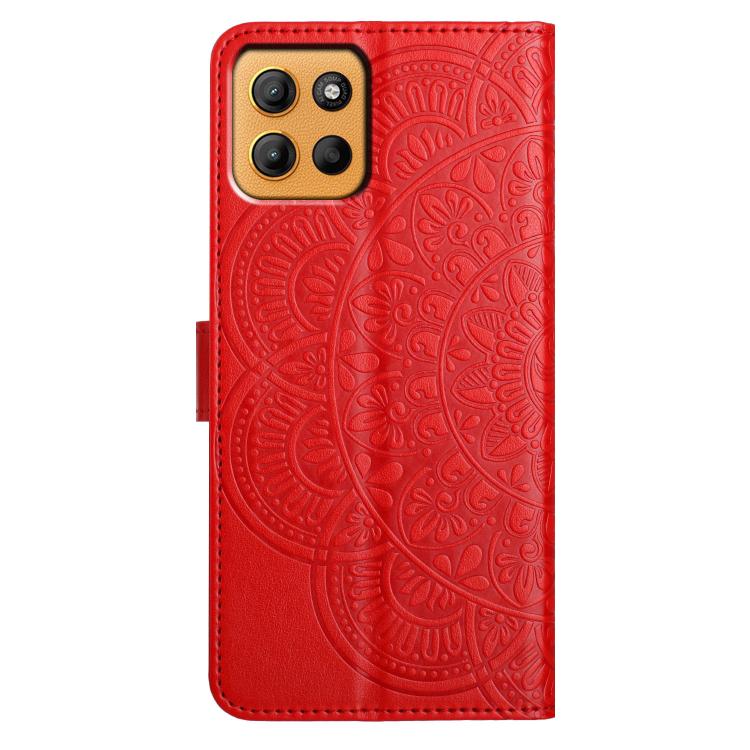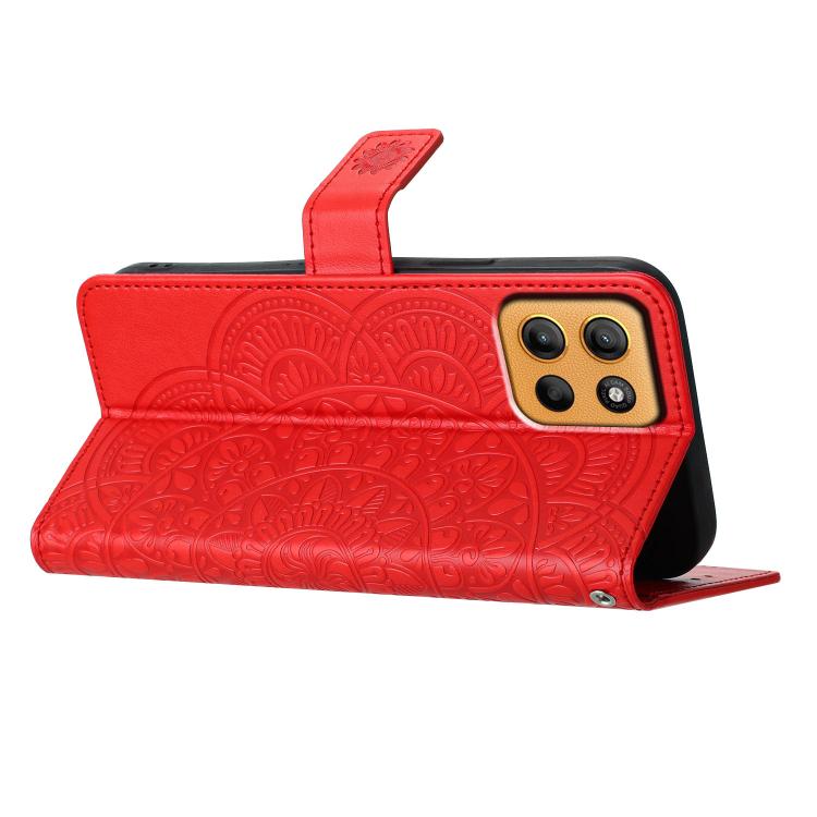 Funda de Cuero con Relieve Floral para Motorola Moto G15 (Roja)