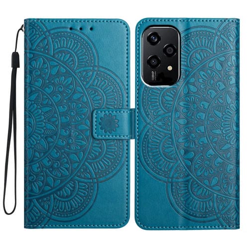 Funda de Cuero con Relieve Floral para Honor 200 Lite (Azul)