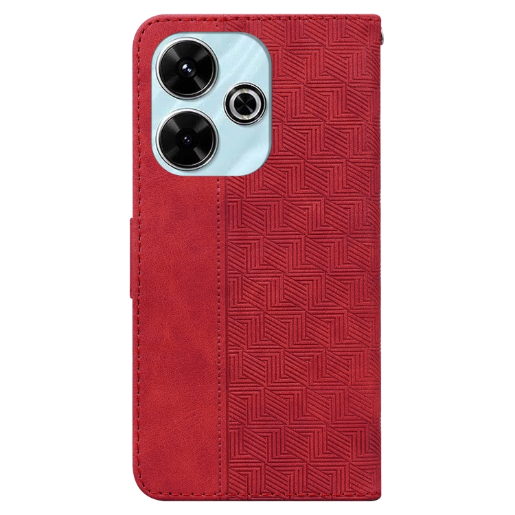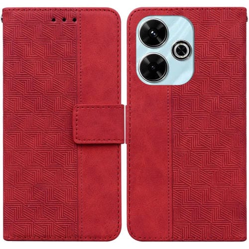 Funda de Cuero con Relieve Geométrico para Teléfono Xiaomi Poco M6 4G (Rojo)