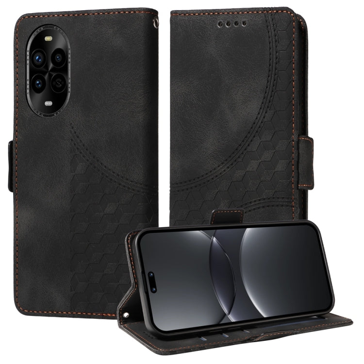 Funda de Cuero Huawei Nova 13 Pro con Rombos en Relieve y Estrellas (Negra)