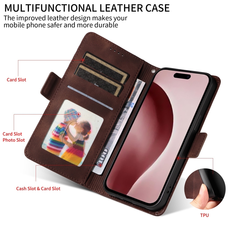 Funda de Cuero para iPhone 16 Pro con Rombos En Relieve y Estrellas (Marrón)