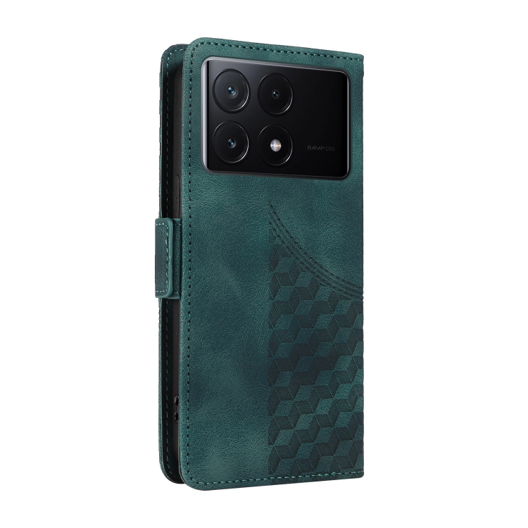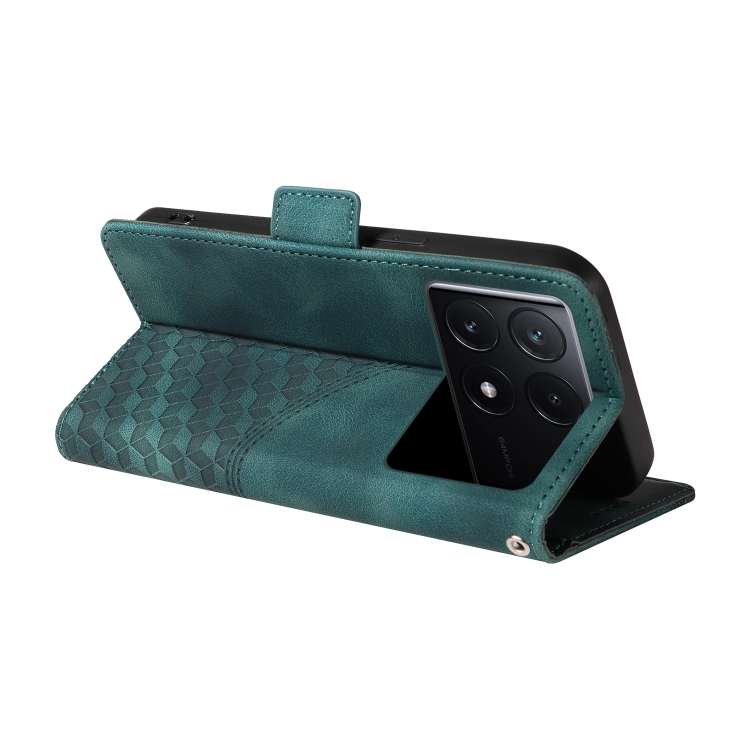 Funda de Cuero con Rombos En Relieve y Estrellas para Redmi K70E 5G (Verde)