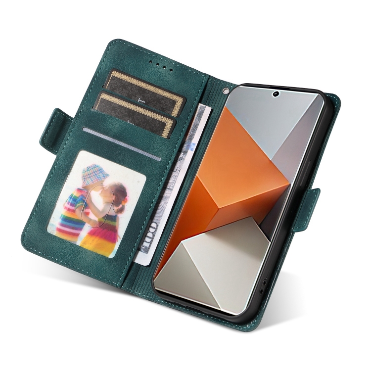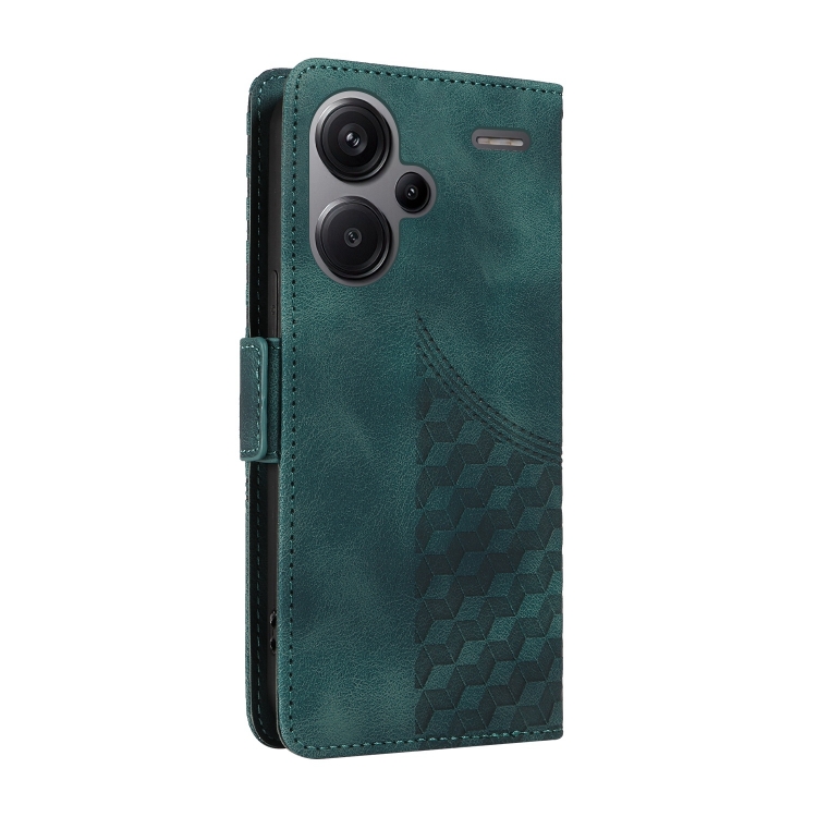 Funda de Cuero con Rombos En Relieve y Estrellas para Redmi Note 13 Pro+ 5G (Verde)