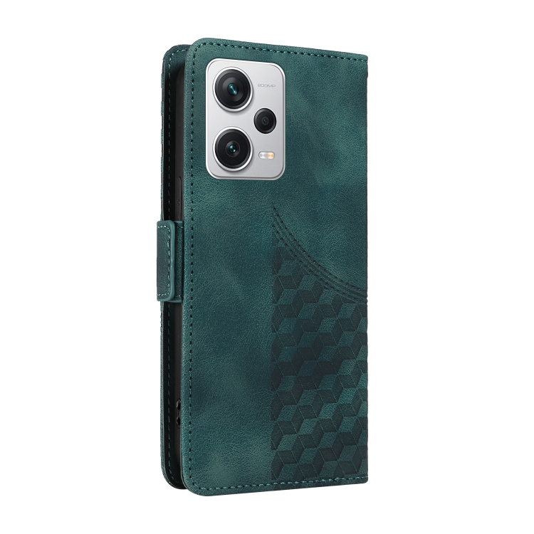 Funda de Cuero con Rombos En Relieve y Estrellas para Xiaomi Poco X5 Pro (Verde)