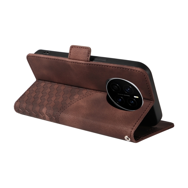 Funda de Cuero con Rombos y Estrellas en Relieve para Honor Magic7 Pro (Marrón)