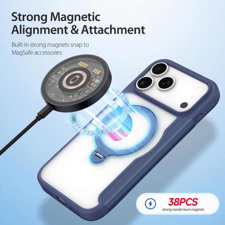 Funda de cuero con soporte para anillo MagSafe para iPhone 17 Pro DUX DUCIS Skin X Pro Series (azul)