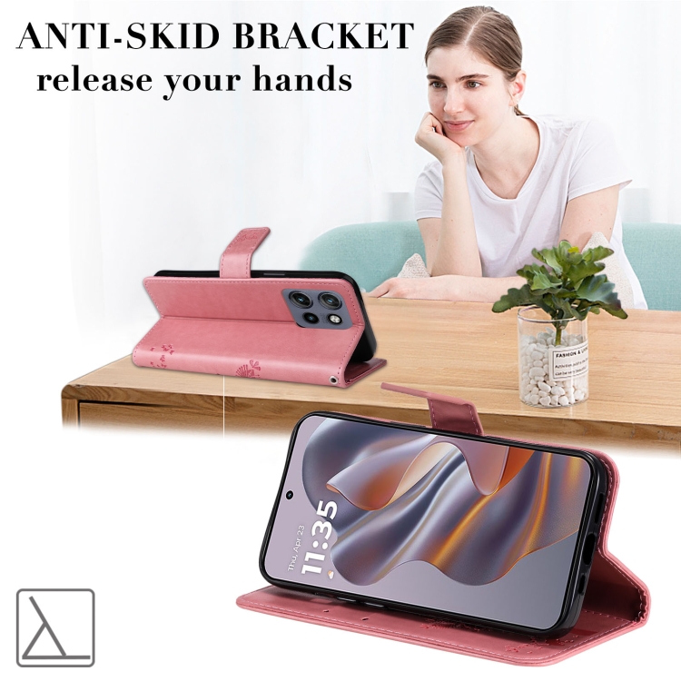 Funda de Cuero con Tapa para Motorola Edge 50 Neo con Diseño de Árbol y Gato (Rosa)