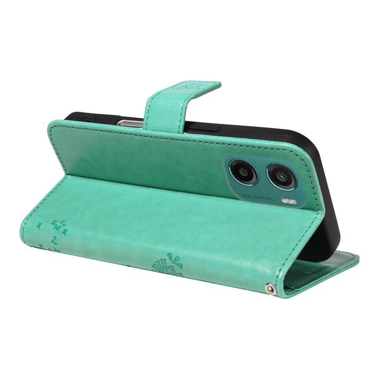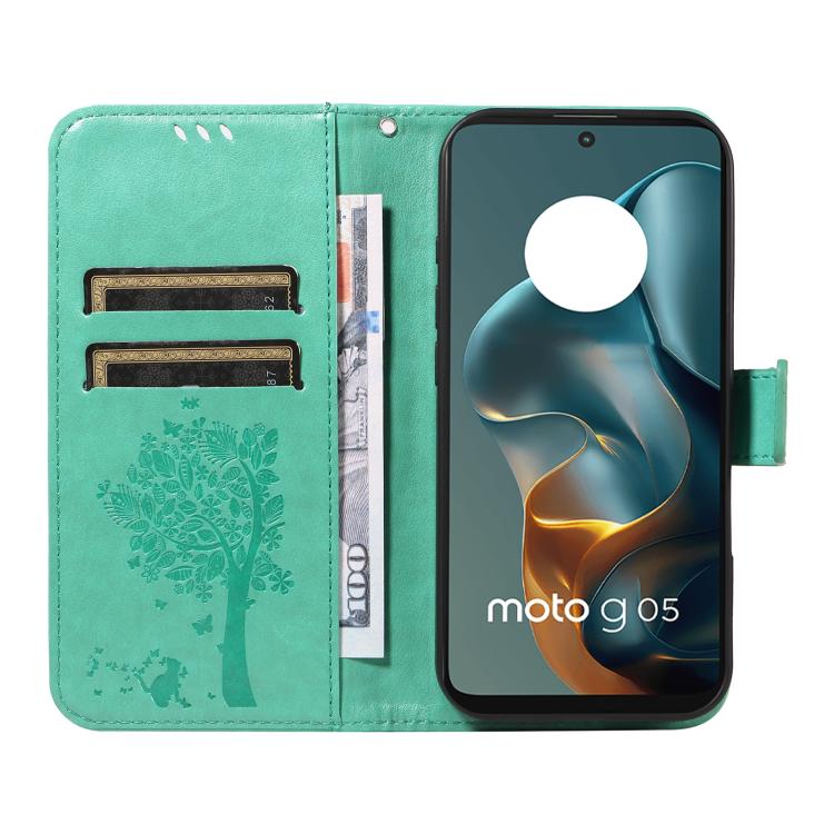 Funda de Cuero con Tapa para Motorola Moto G05 con Diseño de Árbol y Gato (Verde)