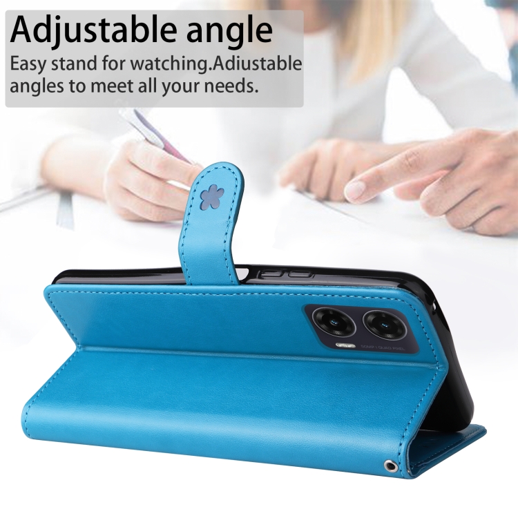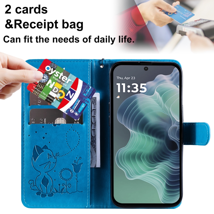 Funda de Cuero con Tapa para Motorola Moto G35 con Diseño de Gato y Abeja (Azul)