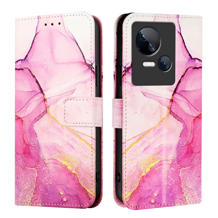 Funda de Cuero con Tapa para Tecno Spark 10 5G Pt003 con Diseño de Mármol (Rosa, Morado y Dorado)