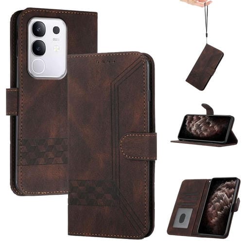 Funda de Cuero con Tapa Cúbica para Vivo Y29 4G (Marrón)