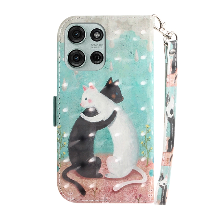 Funda de Cuero con Tapa 3D para Motorola Moto G75 5G (Gato Blanco y Negro)
