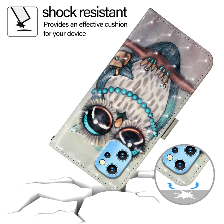Funda de Cuero con Tapa Horizontal y Pintura 3D para Umidigi Power 7 Max (Búho Gris)