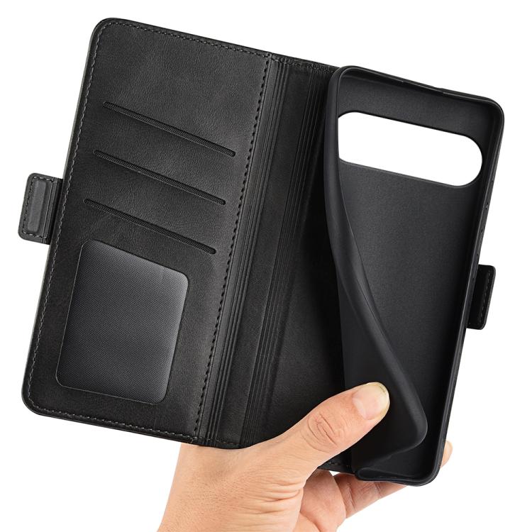 Funda de Cuero con Tapa Horizontal y Hebilla Magnética Doble Cara para Google Pixel 9/9 Pro (Negra)