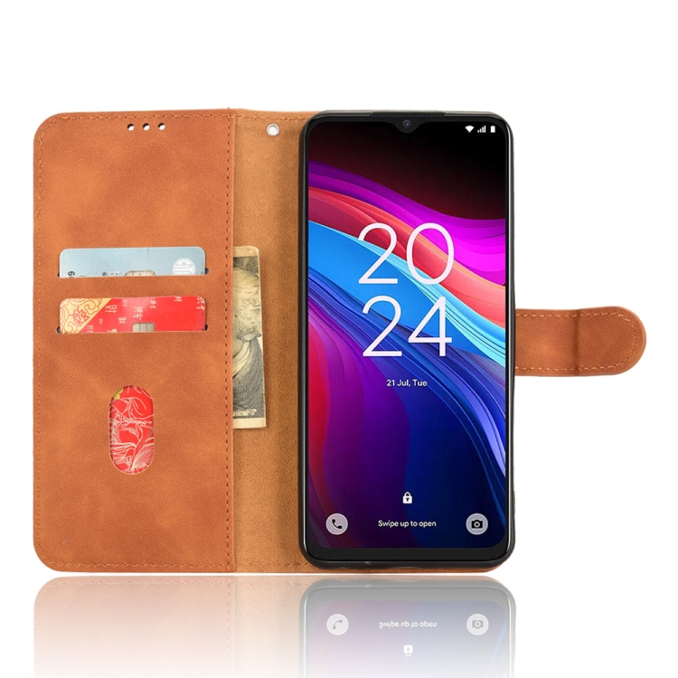 Funda de Cuero para TCL 503 con Tapa Magnética y Tacto Piel (Marrón)