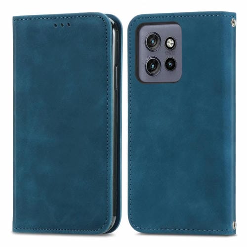 Funda de Cuero con Tapa Magnética para Motorola Edge 50 Neo (Azul)