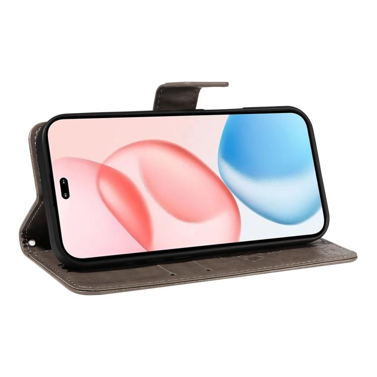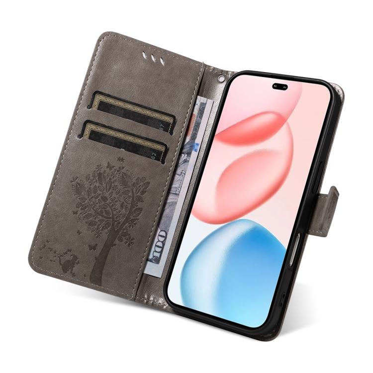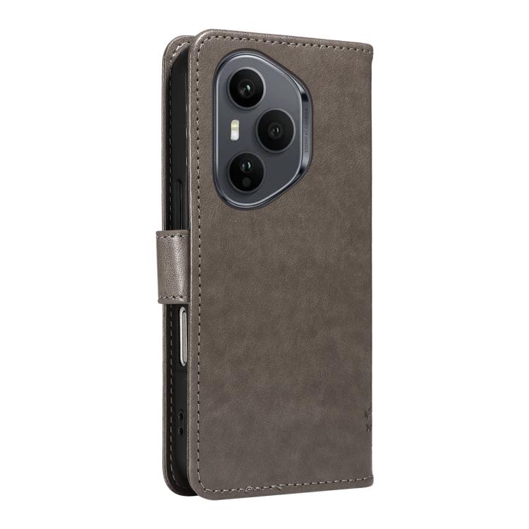Funda de cuero con tapa para Honor 400 Pro Global (160,8 mm), diseño de árbol y gato en relieve (gris)