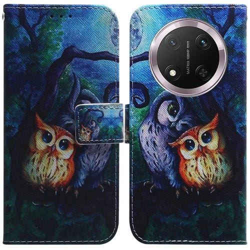 Funda de Cuero con Tapa para Honor X9C con Dibujo a Color (Búho con Pintura al Óleo)