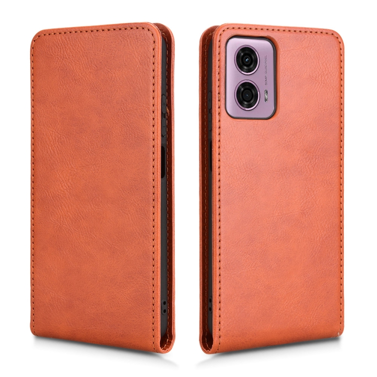 Funda de Cuero con Tapa Vertical Magnética para Motorola Moto G04/G24/G24 Power (Marrón)