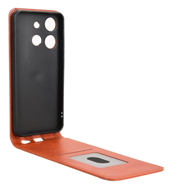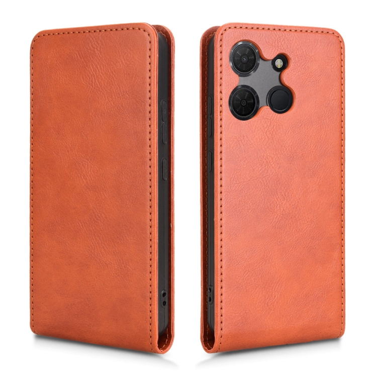 Funda de Cuero para Teléfono TCL 503 con Tapa Vertical Magnética (Marrón)