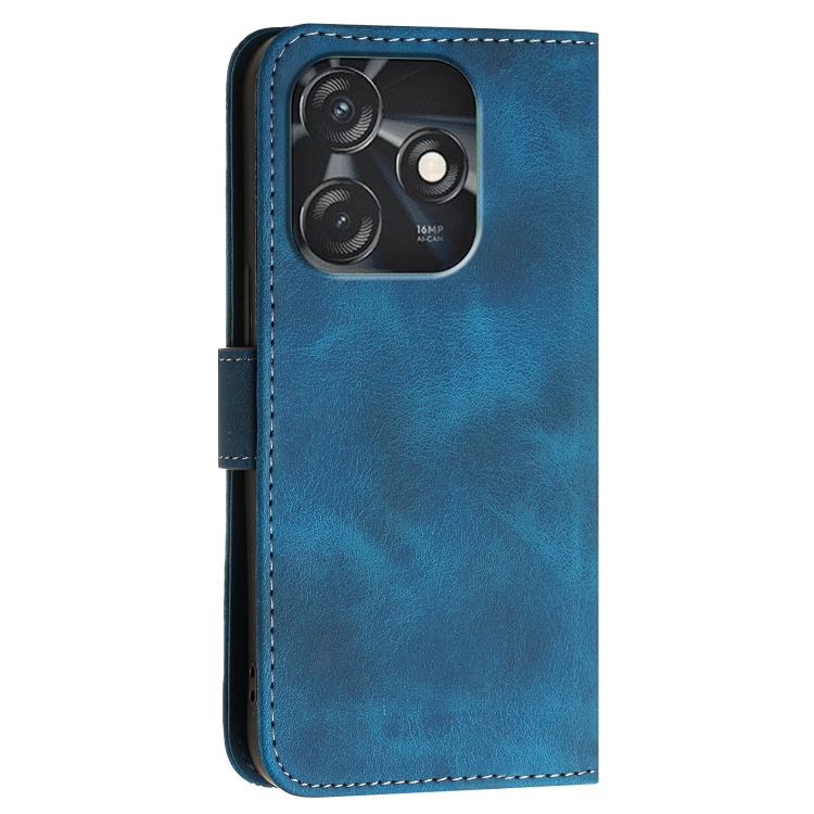 Funda de Cuero con Tapa y Cordón para Tecno Spark 10C Yx0080 Diseño Mariposas (Azul Oscuro)