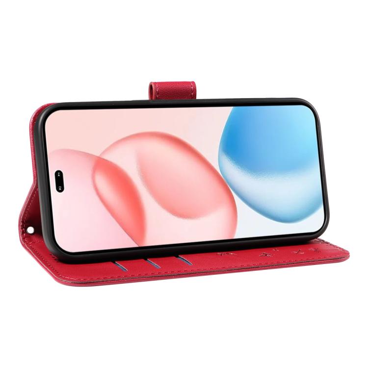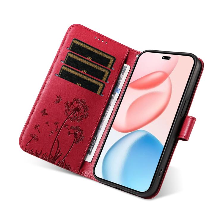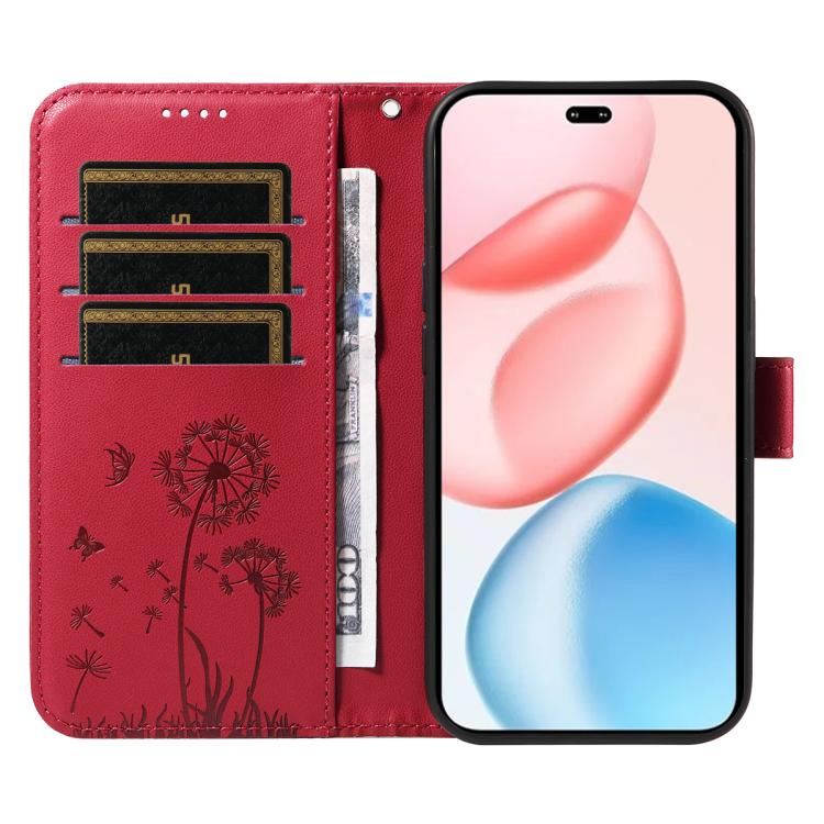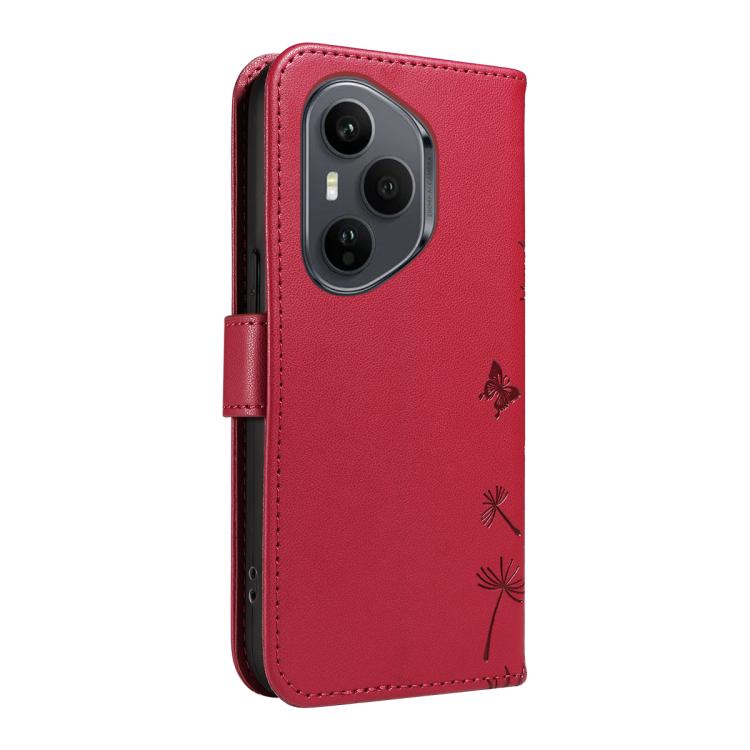 Funda de cuero con tapa y diseño de diente de león en relieve para Honor 400 Pro Global (160,8 mm) (Rojo)