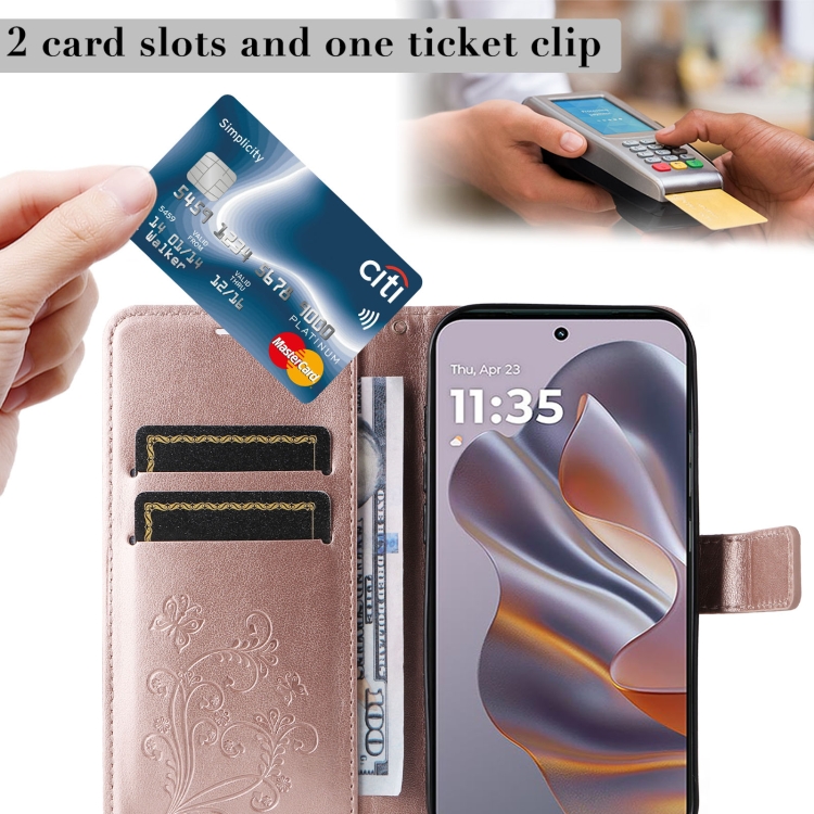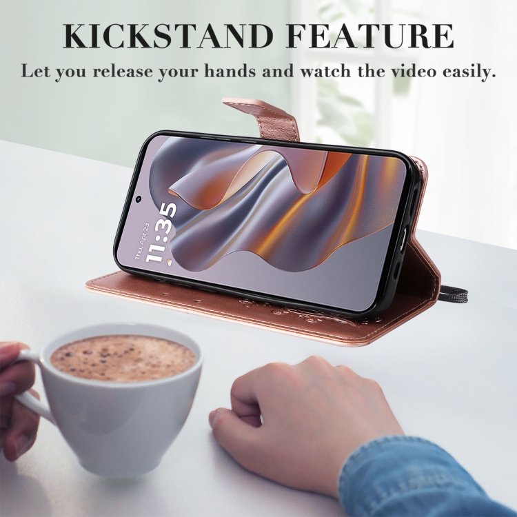 Funda de Cuero con Tapa y Mariposa en Relieve 3D para Motorola Edge 50 Neo (Oro Rosa)
