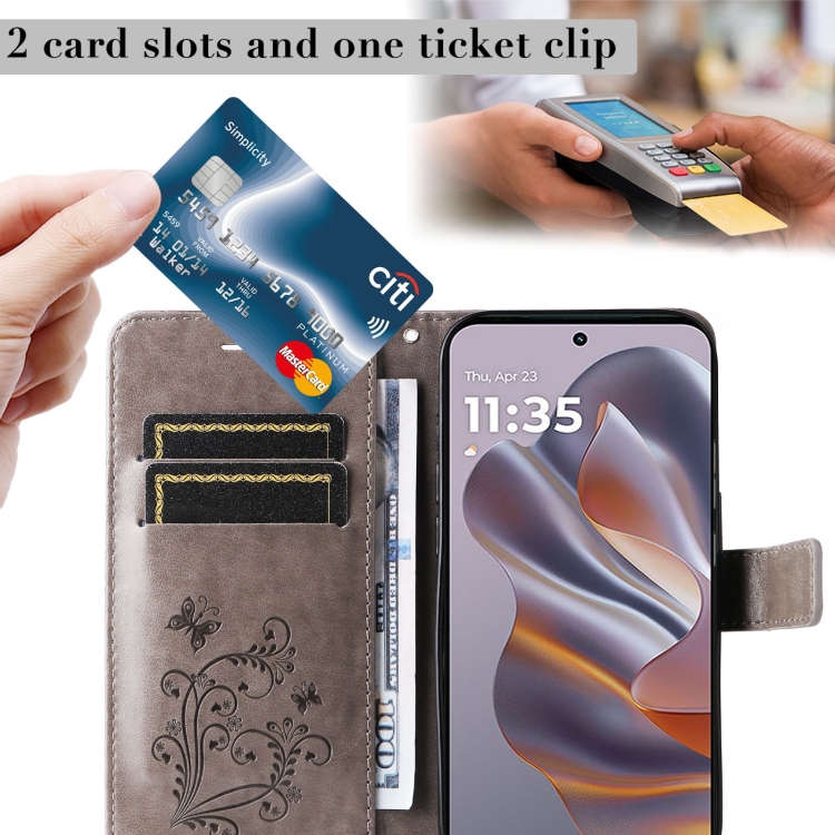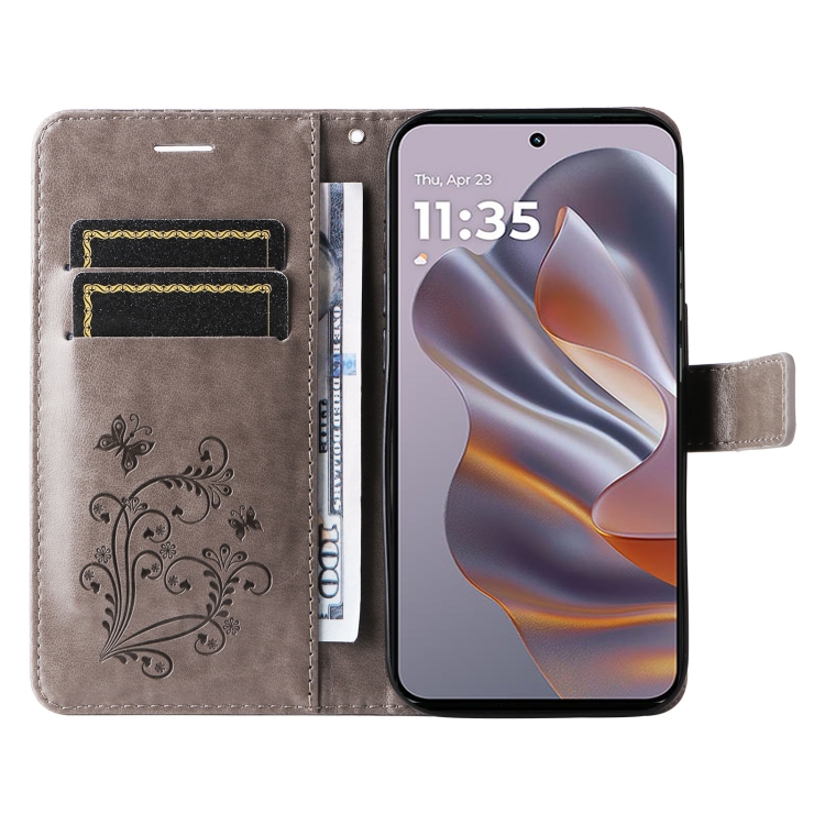 Funda de Cuero con Tapa y Mariposas en Relieve 3D para Motorola Edge 50 Neo (Gris)