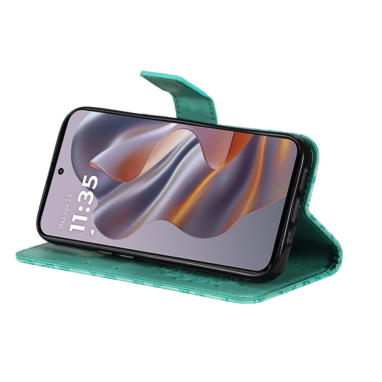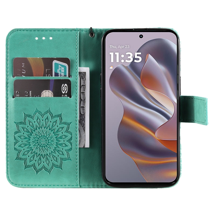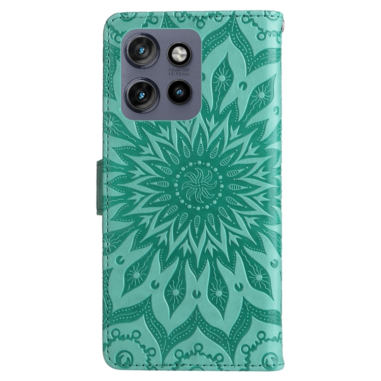 Funda de Cuero con Tapa y Estampado de Girasoles en Relieve para Motorola Edge 50 Neo (Verde)