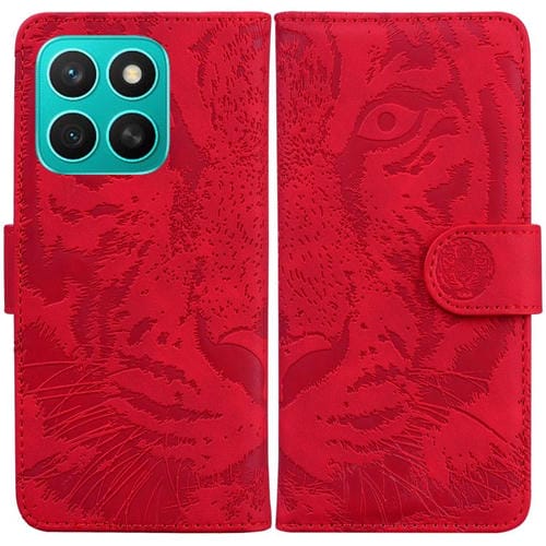 Funda de Cuero con Tapa y Estampado de Tigre para Honor X8C 4G (Roja)