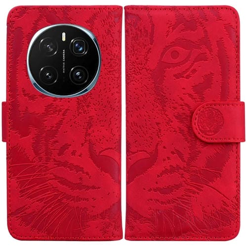 Funda de Cuero con Tapa y Estampado de Tigre para Honor Magic7 Pro (Roja)