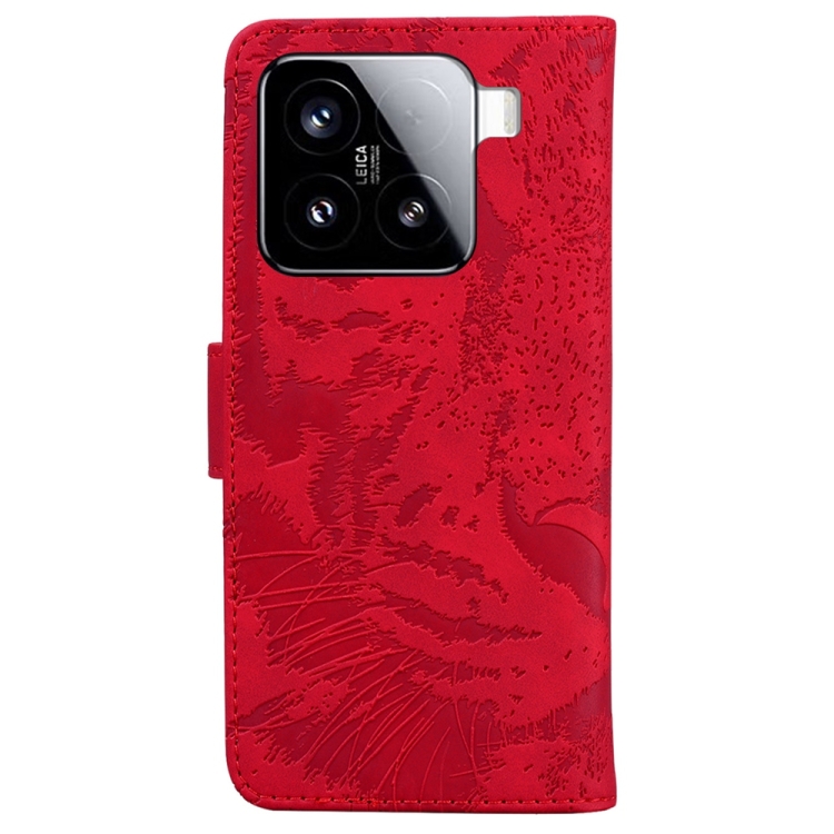 Funda De Cuero Con Tapa Y Estampado De Tigre Para Xiaomi 15 (Roja)