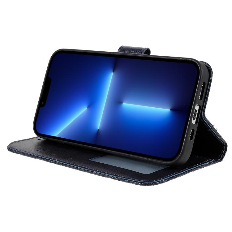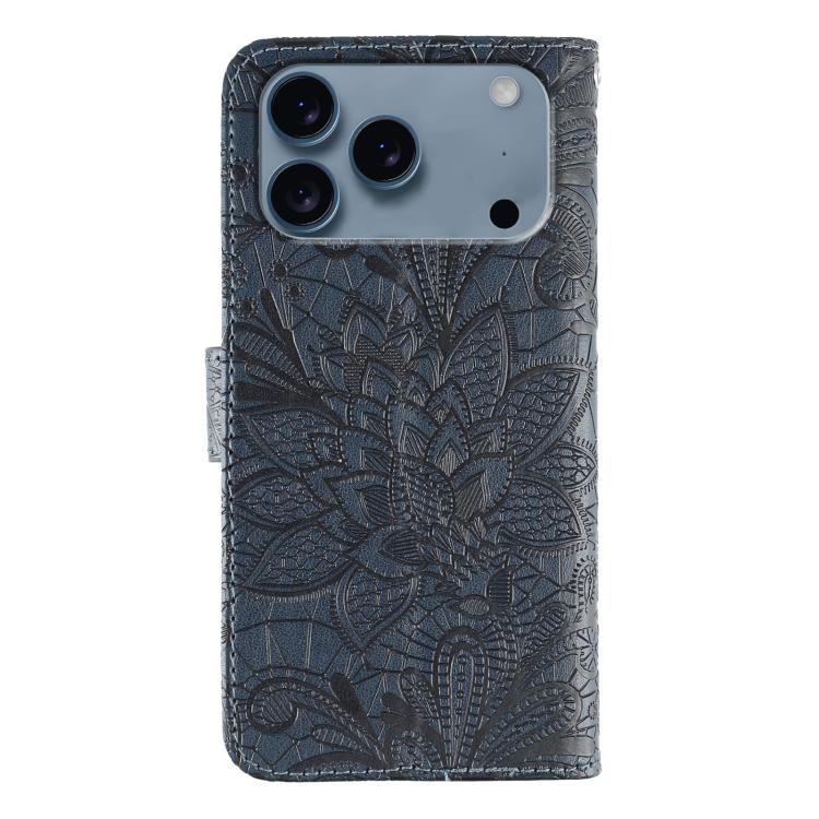 Funda de cuero con tapa y estampado floral para iPhone 17 Pro (azul oscuro)