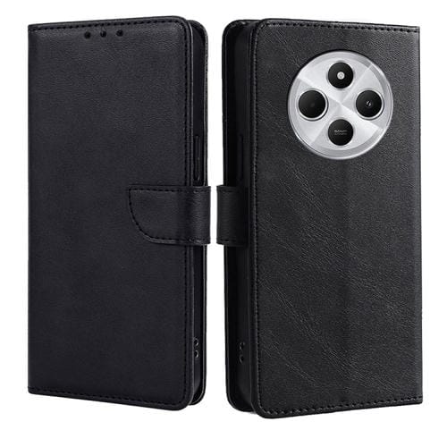 Funda de Cuero con Tapa y Hebilla con Textura de Piel de Becerro para Redmi 14C 4G (Negro)