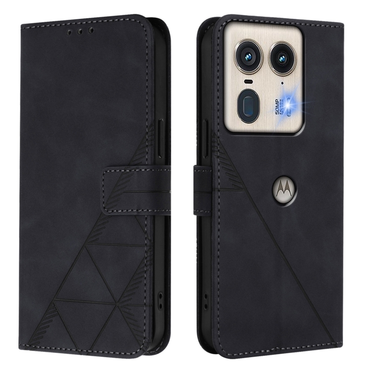 Funda de Cuero con Tapa y Relieve 3D para Motorola Edge 50 5G (Negra)