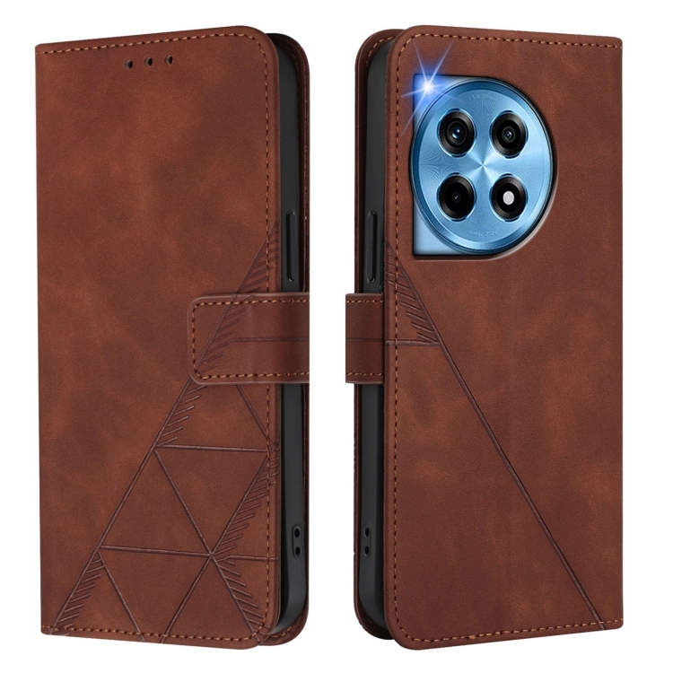 Funda de Cuero con Tapa y Relieve 3D para OnePlus 12R 5G Global Crossbody (Marrón)