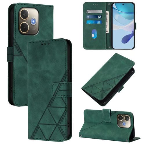 Funda de Cuero con Tapa y Relieve 3D para Oppo A5 Pro 5G Global Crossing (Verde Oscuro)