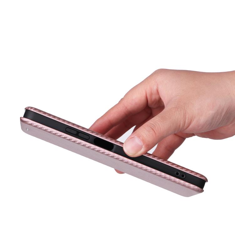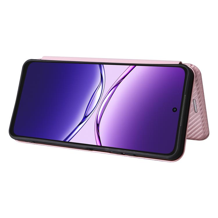 Funda de Cuero con Tapa y Textura de Fibra de Carbono para Oppo A5 Pro 5G (Rosa)