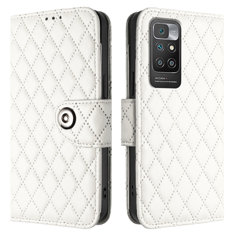 Funda de Cuero con Tapa y Textura Rómbica para Redmi 10 / Redmi 10 2022 con Cordón (Blanco)