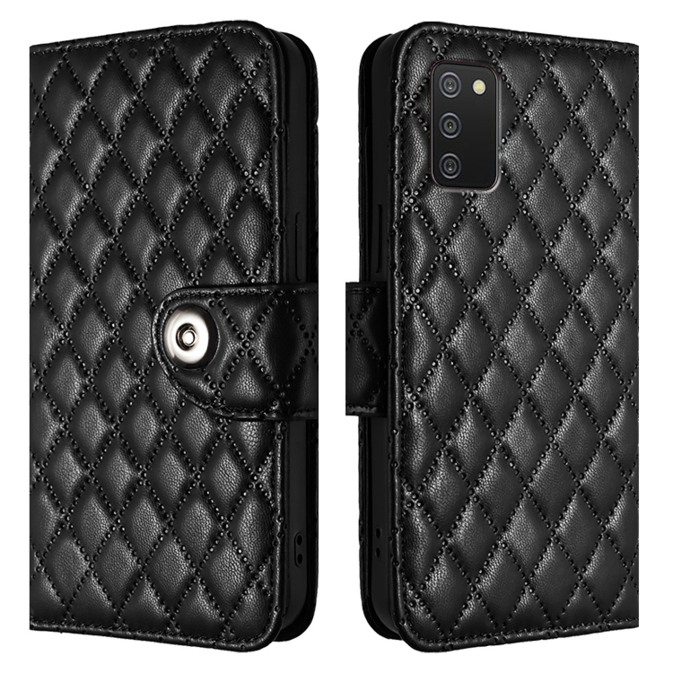 Funda Cuero con Tapa y Textura Rómbica para Samsung Galaxy A02S 164mm con Cordón (Negro)