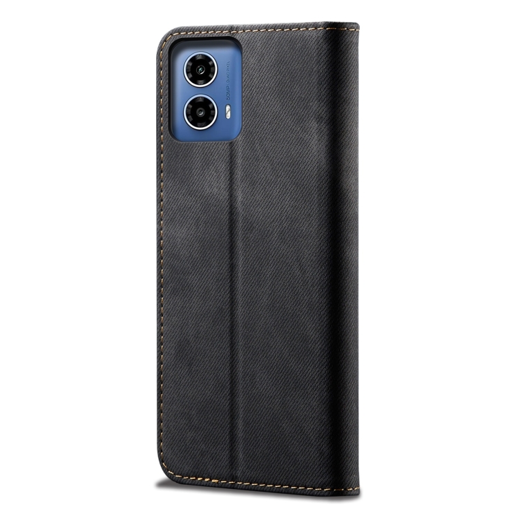 Funda de Cuero con Tapa y Textura Vaquera para Motorola Moto G35 (Negra)
