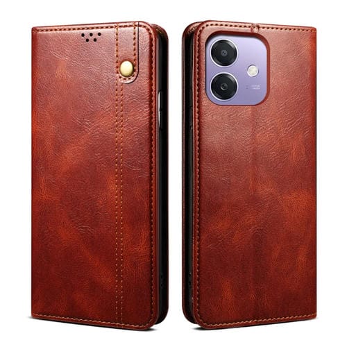 Funda de Cuero con Textura Crazy Horse y Cera de Aceite de la India para Oppo A3X 5G (Marrón)