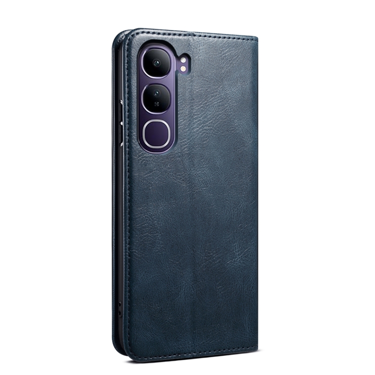 Funda de Cuero con Textura Crazy Horse y Cera de Aceite para Vivo V40 Lite 4G Idn/5G Idn (Azul)