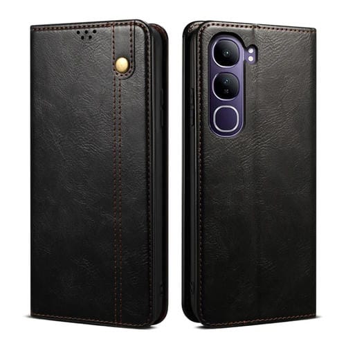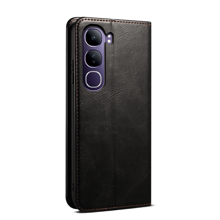 Funda de Cuero con Textura Crazy Horse y Cera de Aceite para Vivo V40 Lite 4G Idn/5G Idn (Negra)