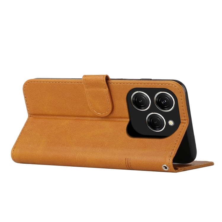 Funda de Cuero con Textura de Becerro y Hebilla para Tecno Spark 20 Pro 5G (Amarillo)
