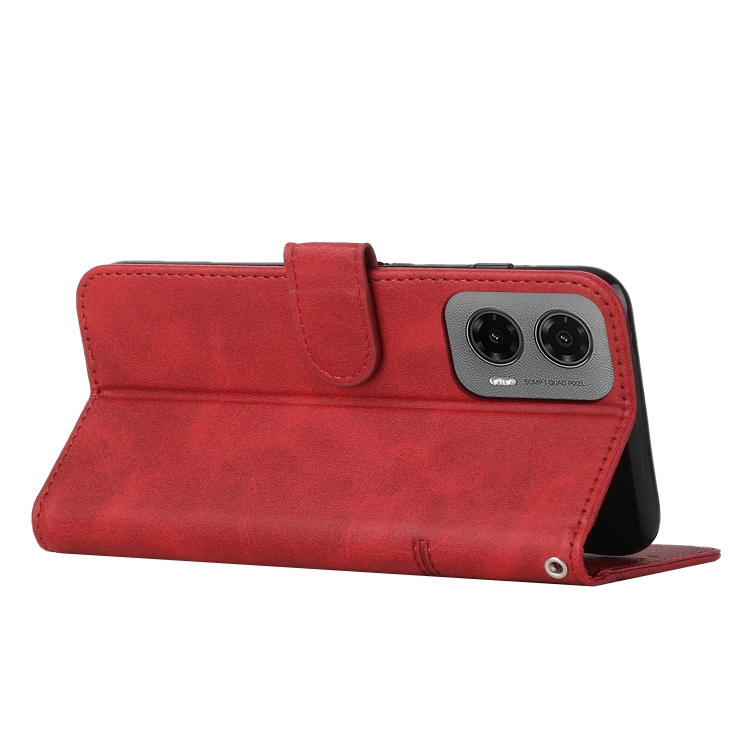 Funda de Cuero con Textura de Becerro y Costuras para Motorola Moto G35 (Rojo)