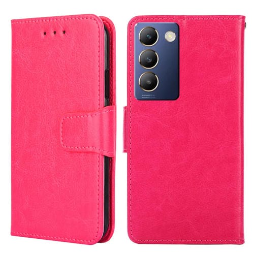 Funda de Cuero con Textura de Cristal Idn para Teléfono Vivo Y100 5G (Rosa Rojo)