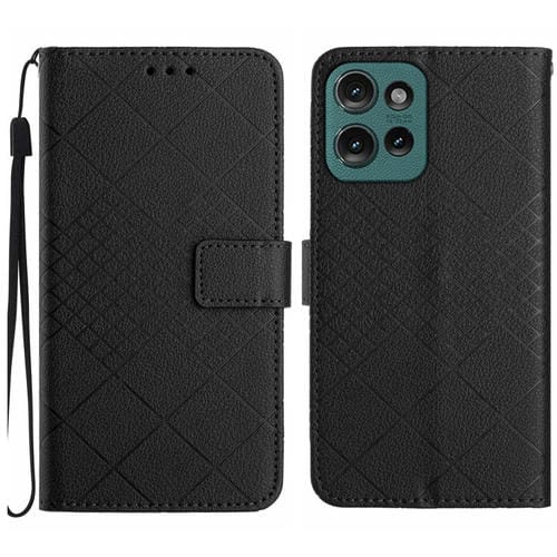 Funda de Cuero Motorola Moto G75 5G con Textura de Cuadrícula Rómbica (Negra)